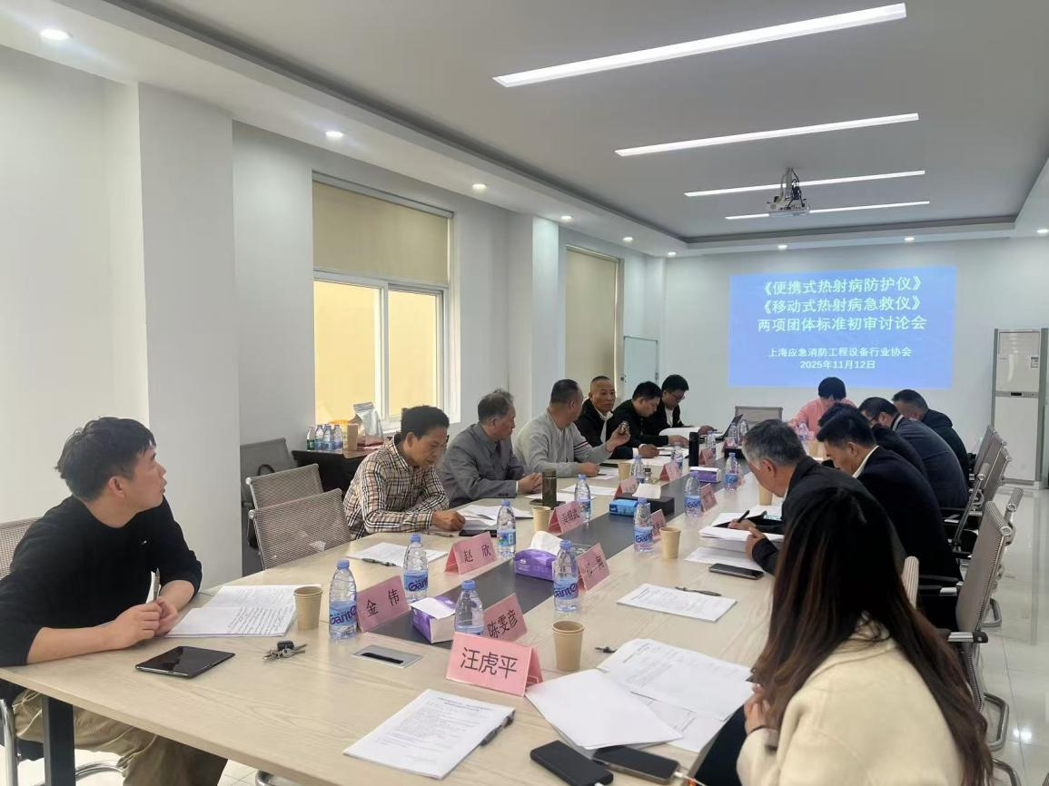 11月12日下午,协会在嘉定区浏翔公路7408号海王星(上海)冷链设备有限公司组织召开《便携式热射病防护仪》《移动式热射病急救仪》两项团体标准初审讨论会。